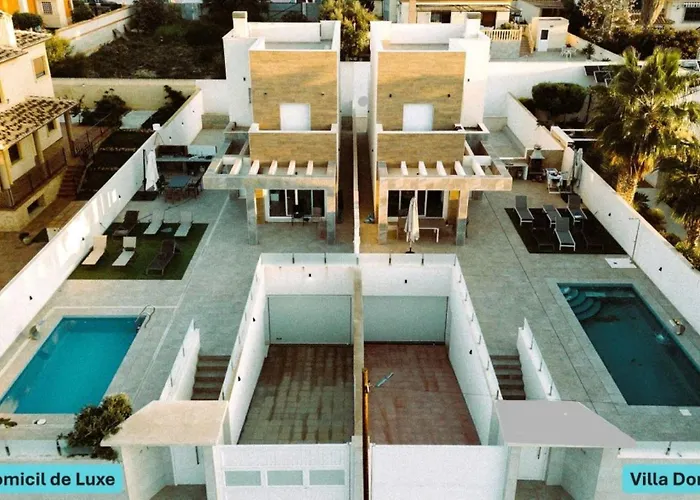 Villa Domicil De Luxe给客人提供阳光露台,游泳池 和游戏的场所以及按摩浴缸 和室外游泳池. 这栋别墅距离摩罗塔有2.1公里,托雷维耶哈水上乐园距离别墅有1.9公里.